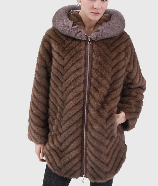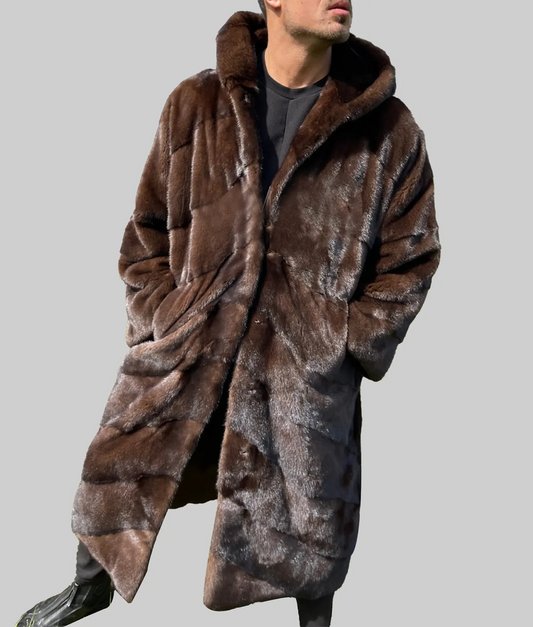 Polly Men Brown Mink Full Length Coat With Double Side Hood