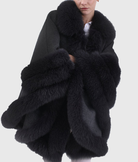 Rexona Women Black Cashmere Coat With Mink Fur Collar