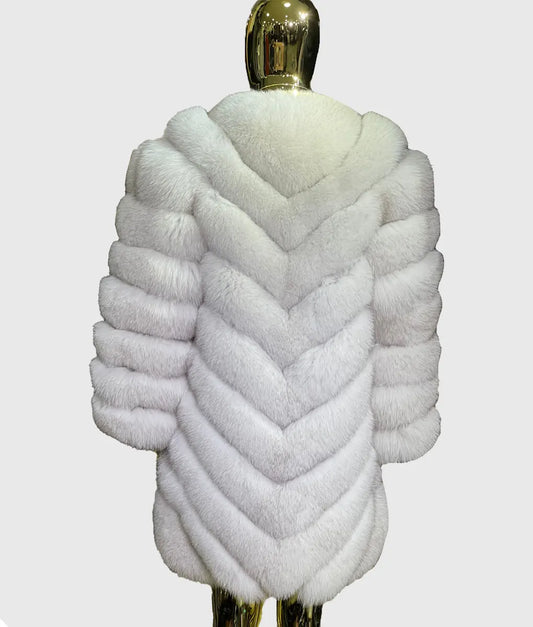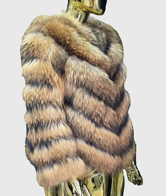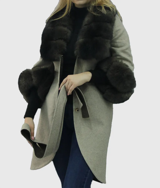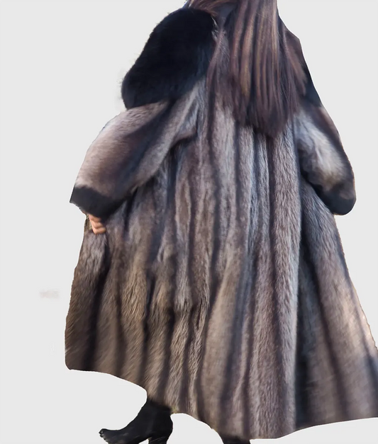 Seslie Women Brown Raccoon Fur Coat with Fox Trim