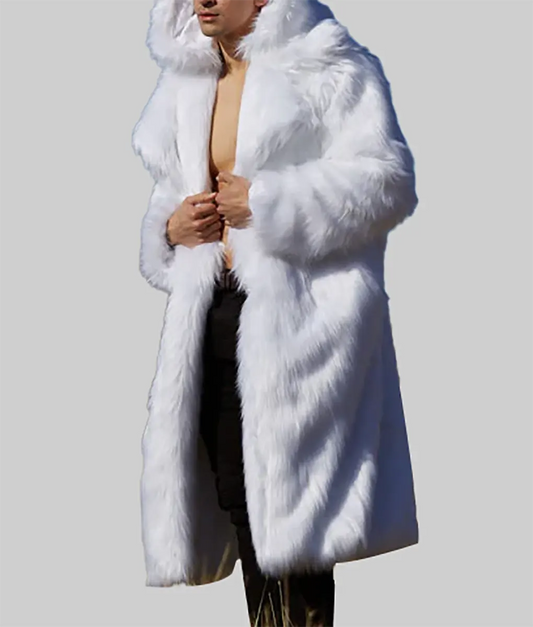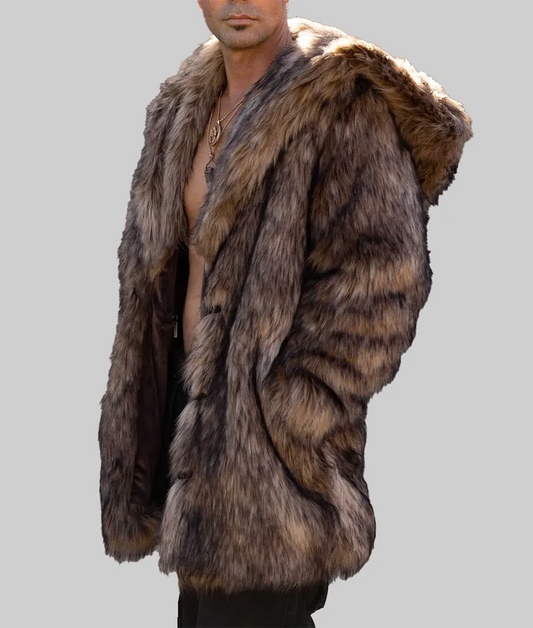 Warrior Men Brown Fox Hooded Faux Fur Coat