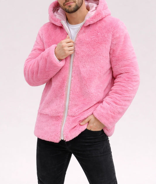 Leave people in awe with our pink fur jacket men. This lively color is perfect for men who like to add a playful and distinct touch to their outfits.
