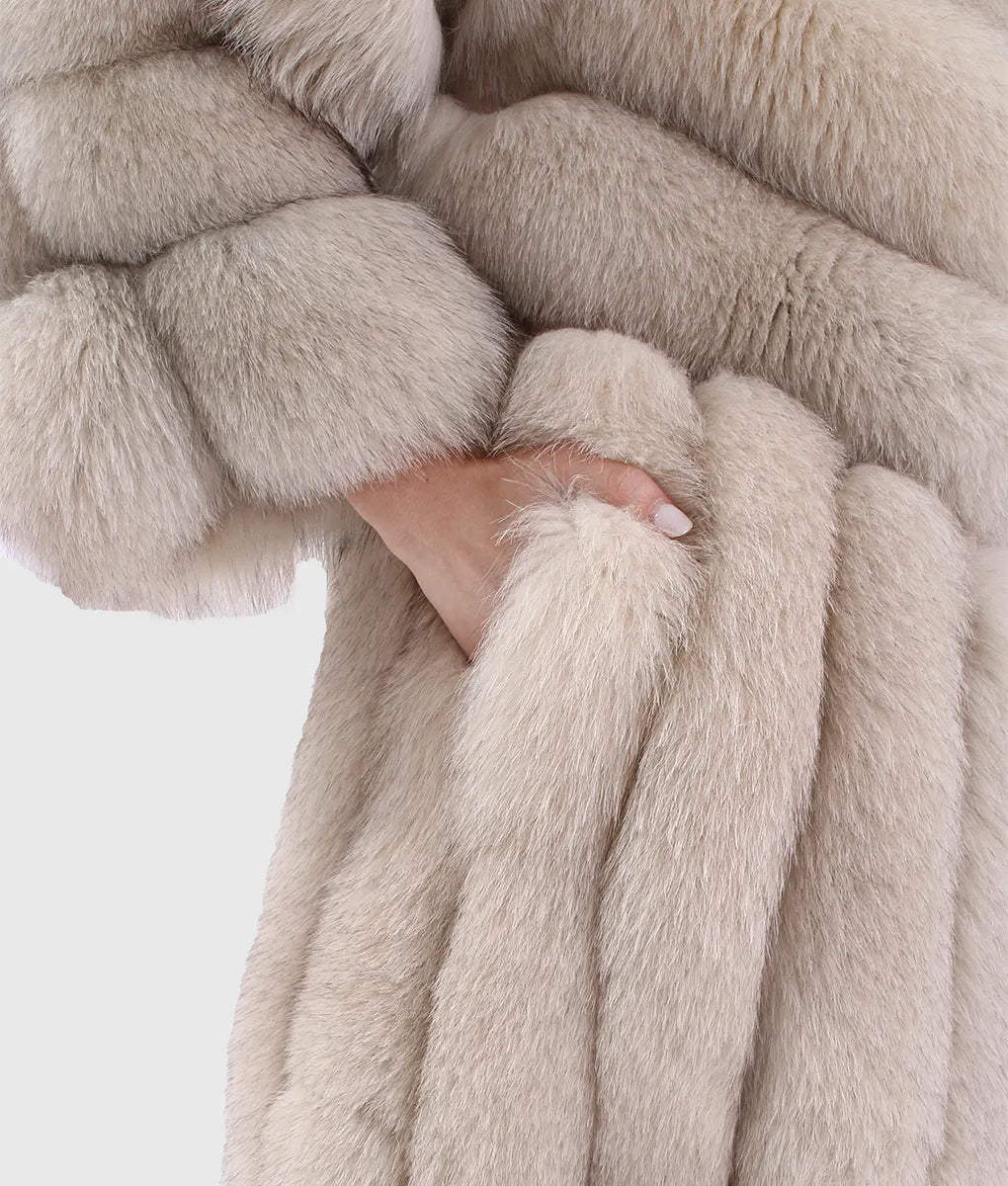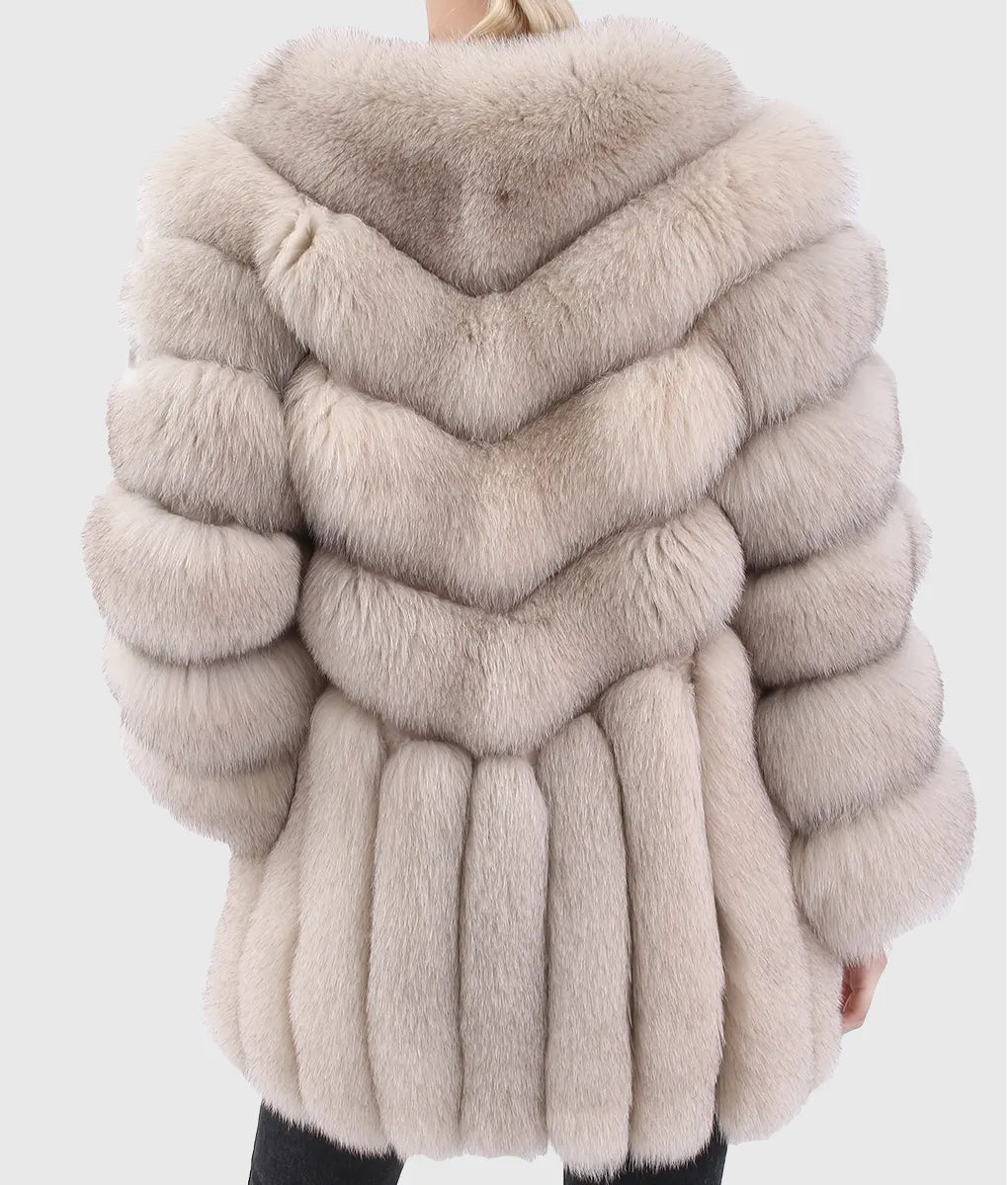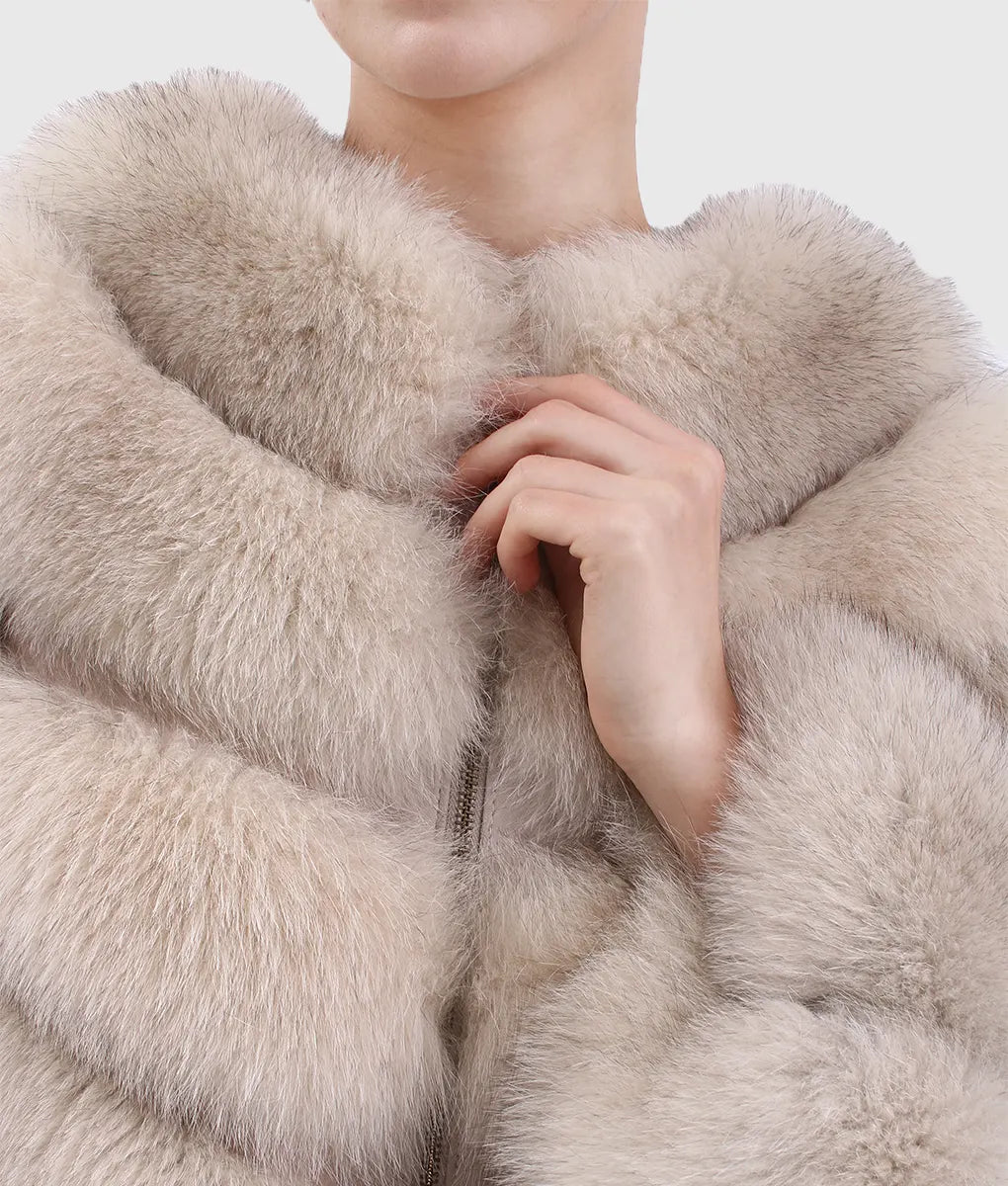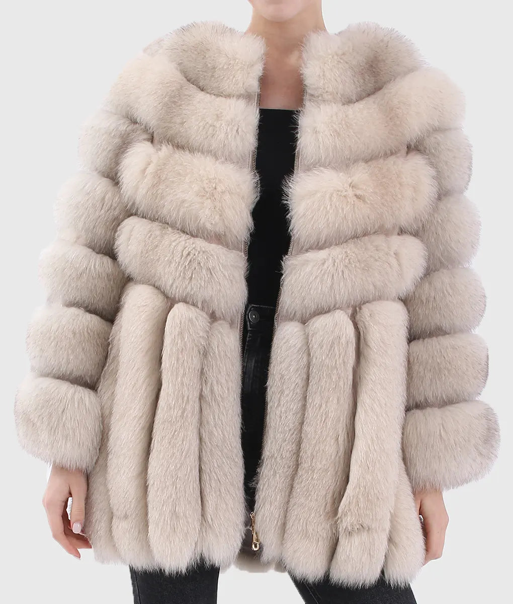 Anie Women White Long Fox Fur Jacket, is a stunning and versatile piece that combines the luxurious texture of fox fur with a touch of modern edge. A very high quality fur, this fox fur is something others cannot compare to.