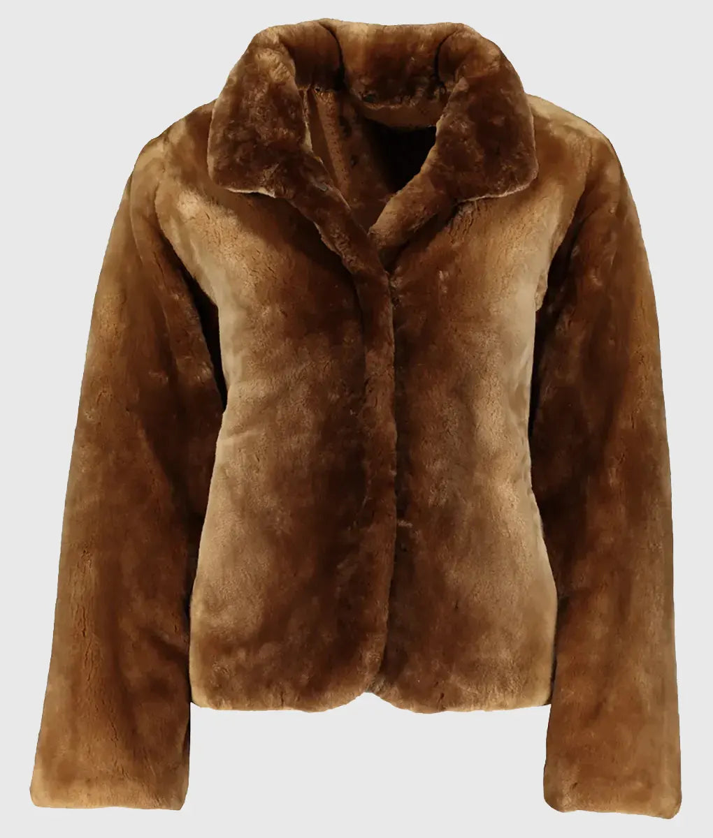- Real Sheared Beaver Fur Coat in Brown Color.