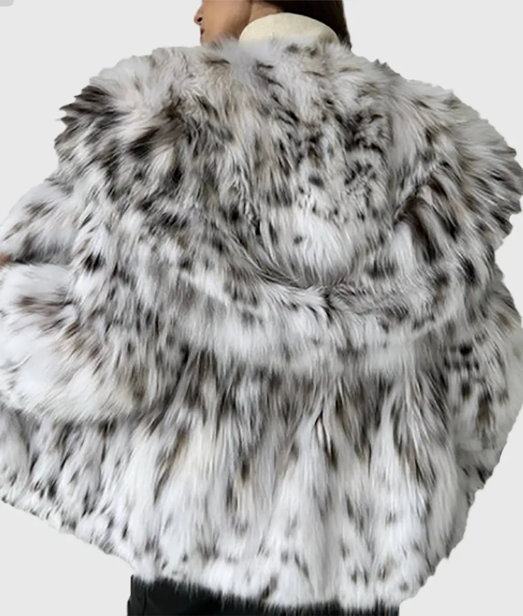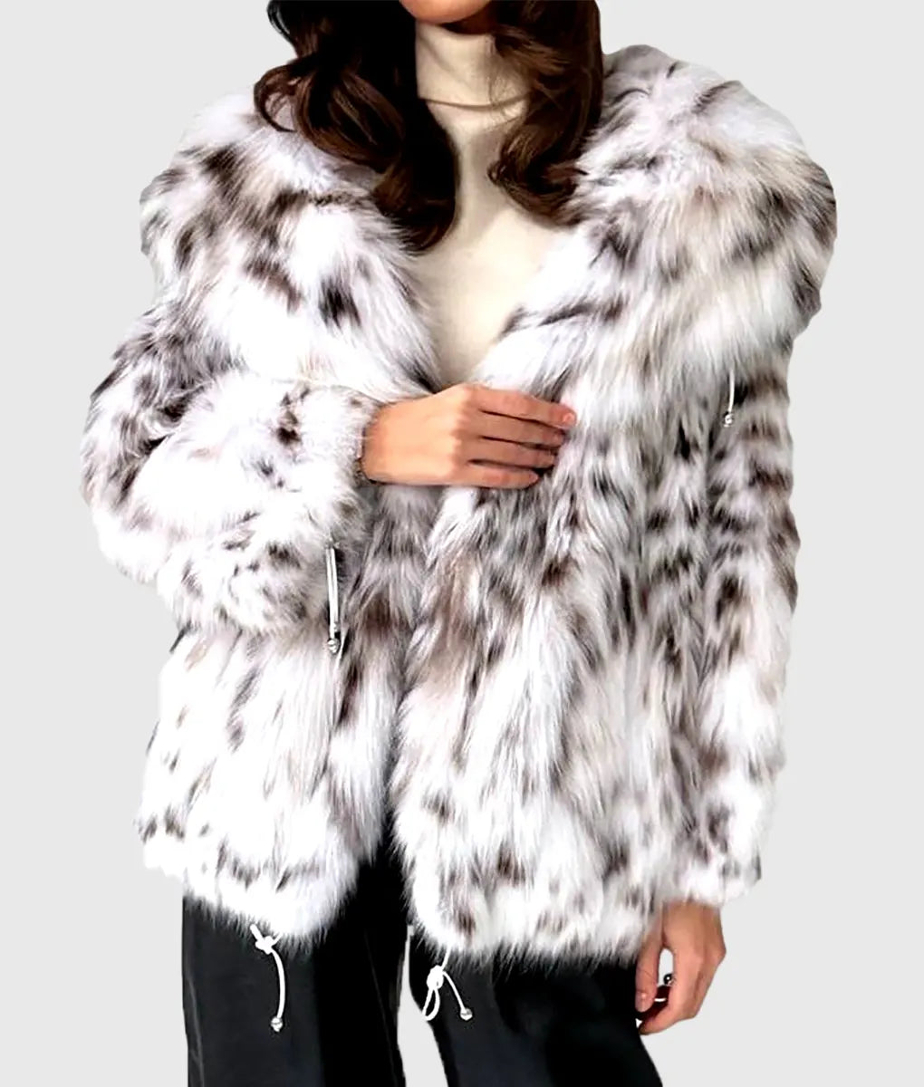 Liena Women White Hooded Canadian Lynx Fur Jacket