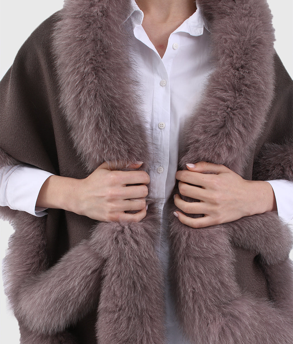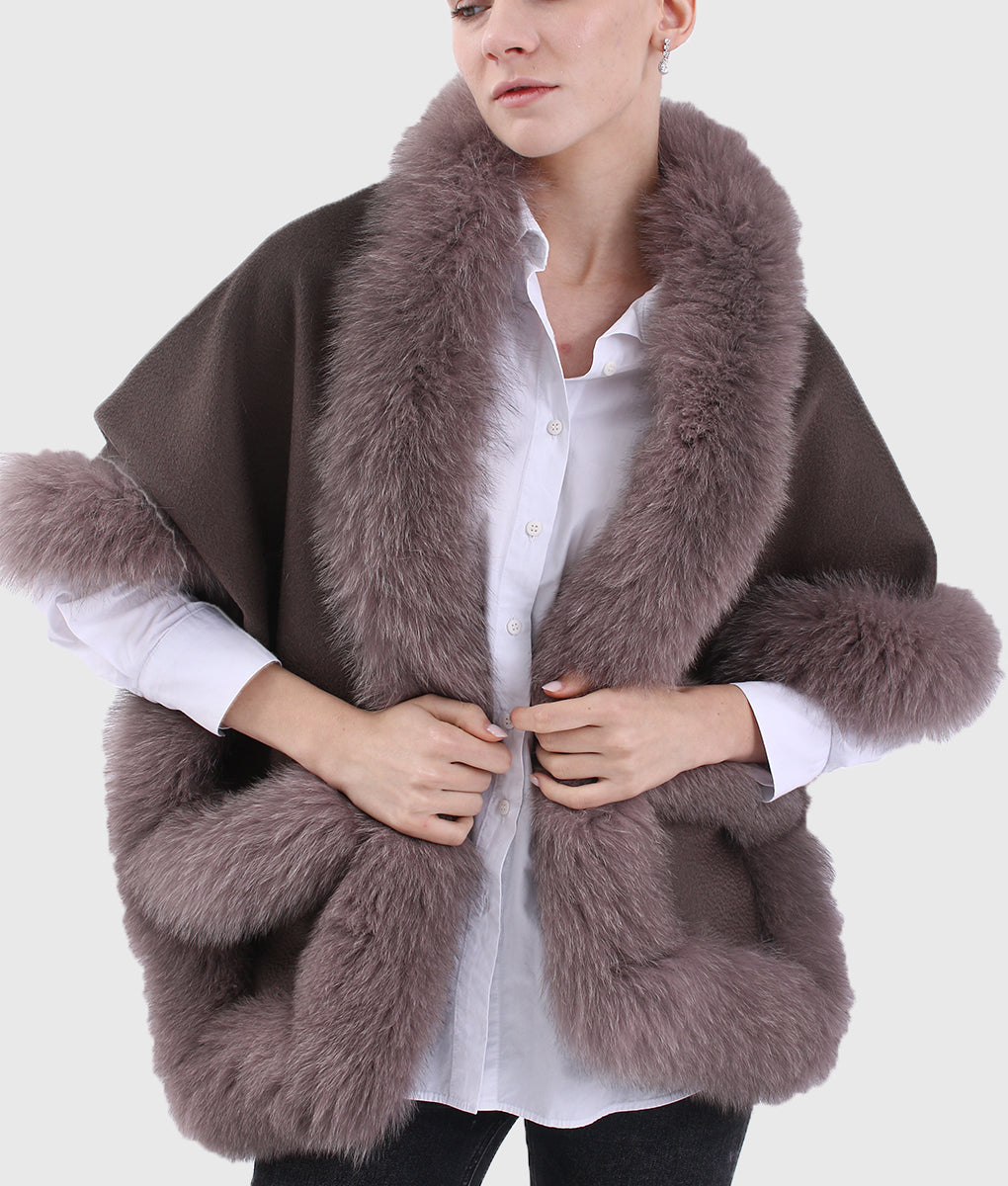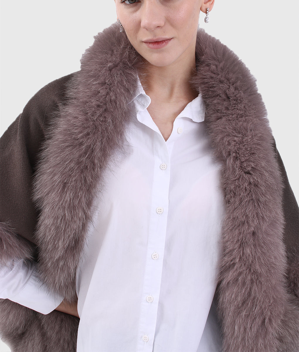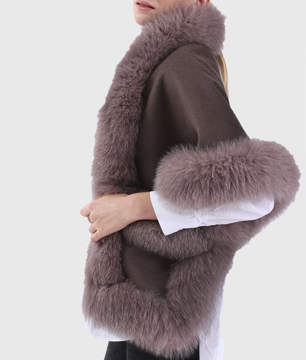 Lorry Women Brown Cashmere Coat With Mink Fur Collar